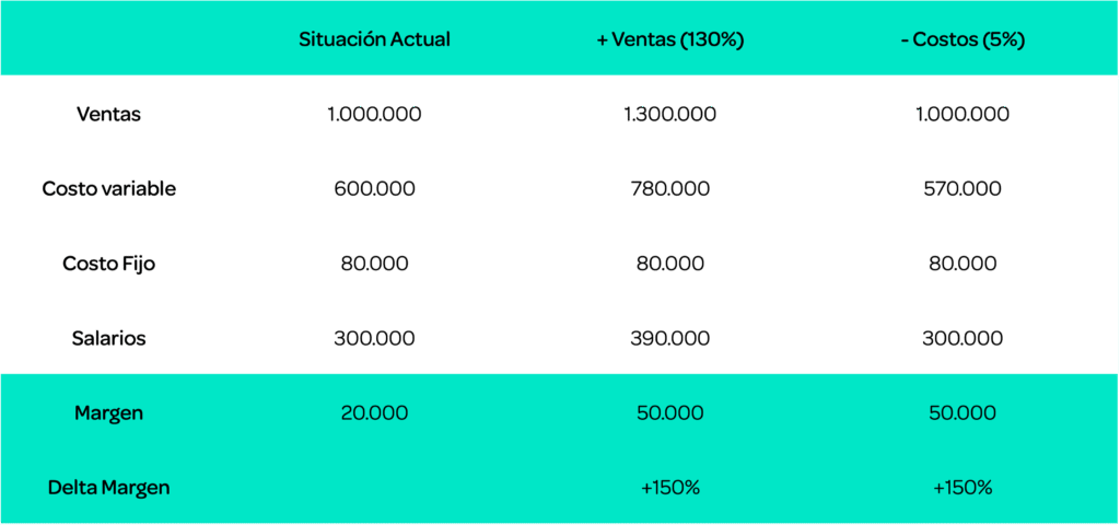 Reducir 5% el costo = Aumentar 30% de las ventas